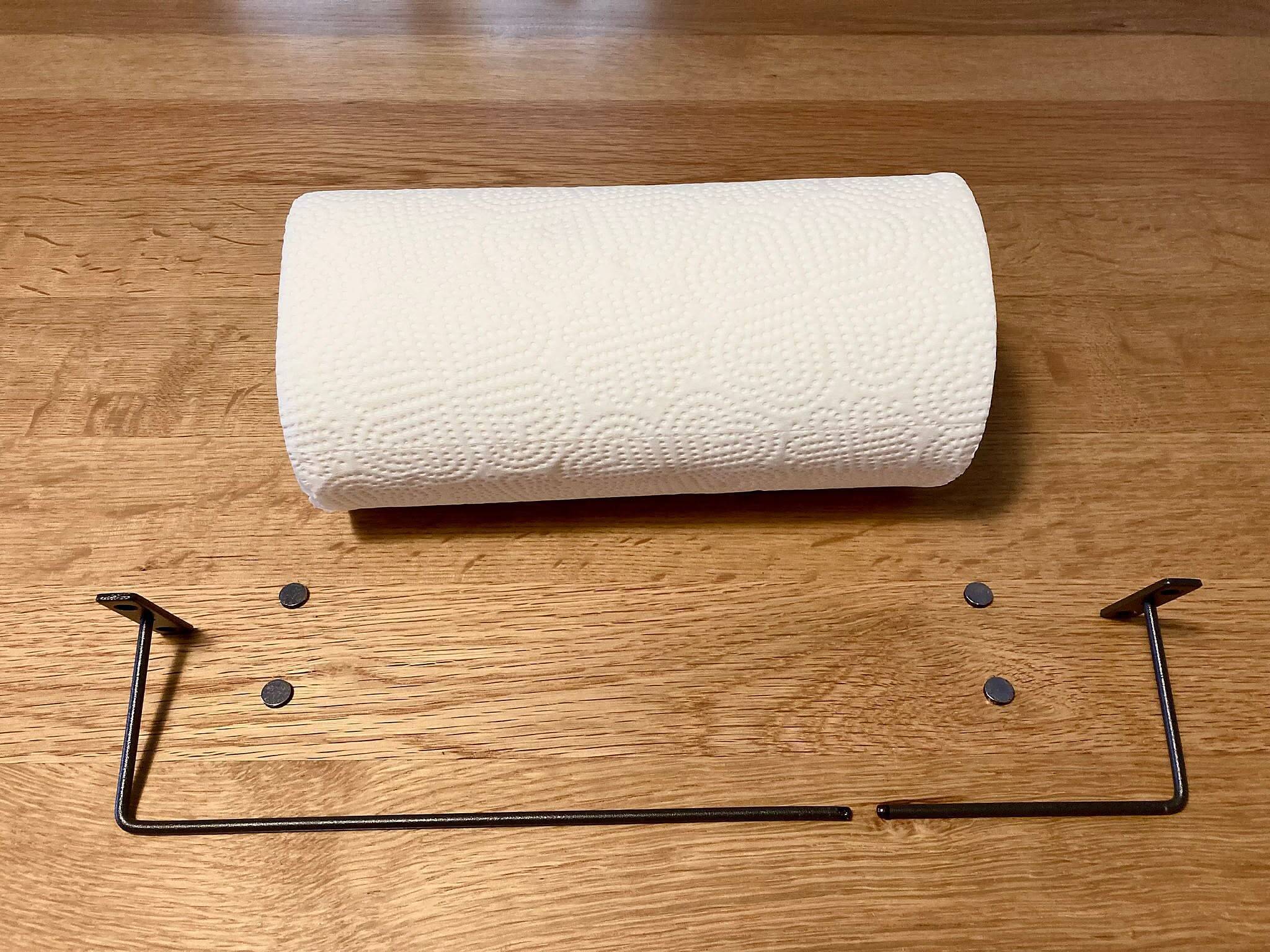 はじめに、インテリアウォールバーをお好きなところでカットしてください。今回の例では、キッチンタオルの幅にあわせてカットしています。