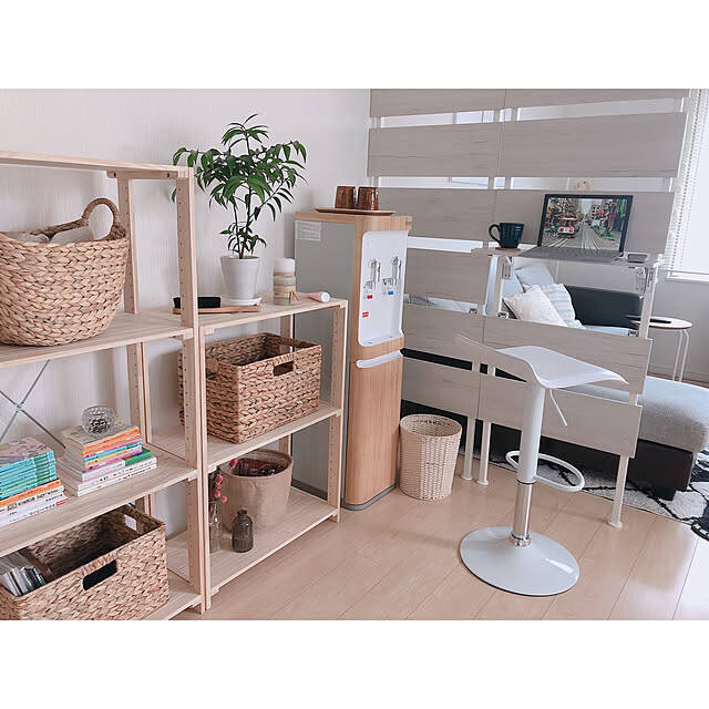 高さの違うパインラックを並べて使っている、haru.さんです。ナチュラルな雰囲気のお部屋に自然と溶け込み、所々に置かれたカゴとも相性抜群です。シンプルなデザインなので、どんなインテリアとも馴染みやすく温かみのある雰囲気を作ってくれます。