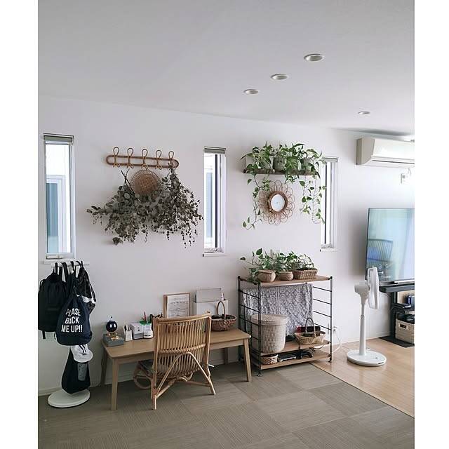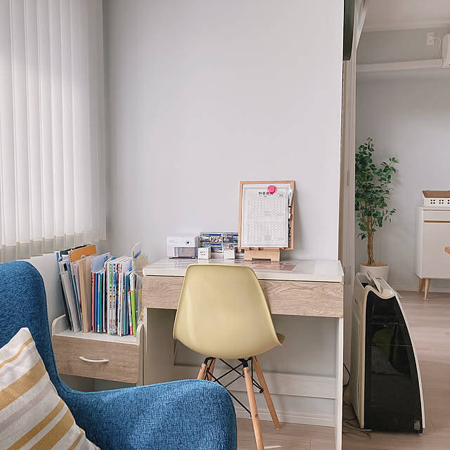こちらのユーザーさんは、リビングの壁際に机を置いていました。机として使っているのは、コタツとしても使えるローテーブルだそう。ナチュラルなイスを合わせて、お子さん用のオシャレな学習コーナーのできあがりです。たくさんのグリーンに囲まれたコーナーに癒されますね。