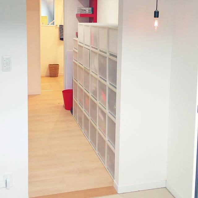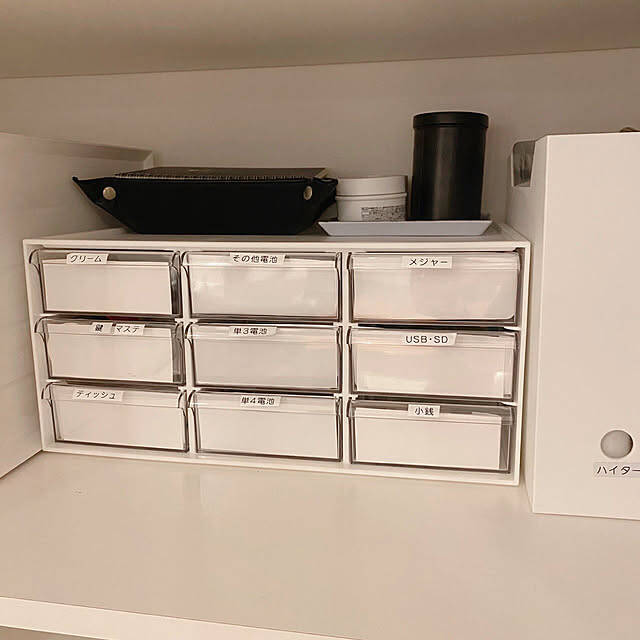 家族の共有物は全員が分かるようにラベリングすると、「あれはどこ?」と聞かれることや、自主的な片付けに繋がり負担が減ります。ユーザーさんもラベリングしたケースに小物類を収納して、家族でシェアしやすいようにされていますね。ちょっとした工夫で家事の時短ができる収納アイデアです。
