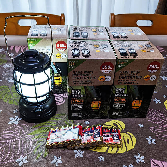 ユーザーさんは、各部屋分の調光ランタンをダイソーでそろえていました。炎点灯での使用で、連続点灯時間が24時間というのが安心できるポイントです。手軽に手に入り機能性も十分なダイソーのランタンは、防災グッズとしてとても心強いアイテムです。