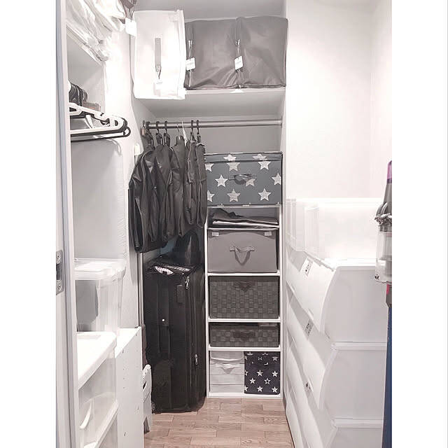 tina_sa_0さんはウォークインクローゼットの中にNフラッテを重ねて置いています。中にはシーズンオフの衣類などを収納しているそうです。ふたがぴたっと閉まるので、衣類をほこりから防ぐのにも役立ちますね。引き出しタイプよりもスペースを必要としないのもうれしいところです。