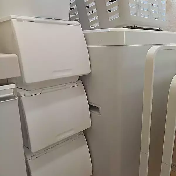 katieさんがNフラッテを使っているのは洗面所です。洗濯機横のすき間収納に選ばれていますが、合わせたようにぴったりサイズですね。ホワイトカラーが清潔感があって、周りのインテリアとも馴染んでいます。
