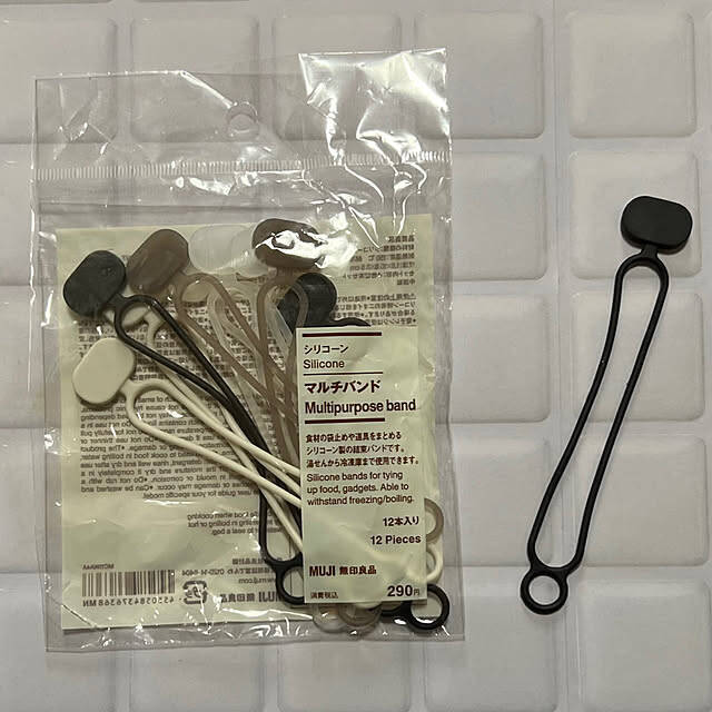 Kuniさんが使われている「シリコーンマルチバンド」は、食材の袋止めや物をまとめたりなど、幅広い用途で使えるシリコーン製の結束バンドです。湯せんから冷凍庫まで使えるのが便利で、ほうれん草を束ねて茹でることもできるそうですよ。インテリアになじみやすい、モノトーンカラーもうれしいポイントです。