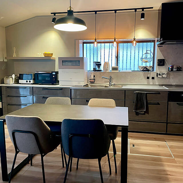 samekoさんが紹介されていたニトリアイテムは、ストーン調の重厚感のある天板が魅力のダイニングテーブルと、温かみのあるカフェ風デザインのダイニングチェアでした。どちらも高級感のあるデザインで、洗練されたカフェ空間を演出してくれます。