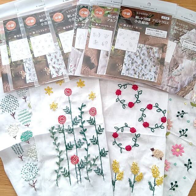 25Moondropsさんが紹介されていたのは、セリアの刺繍キット。初級に引き続き、中級のキットにもチャレンジされていましたよ。さまざまな図案のバリエーションがあるだけでなく、レベル別に展開されているのも高評価ポイント。どの柄もとても可愛くて次から次へと作りたくなってしまいます。