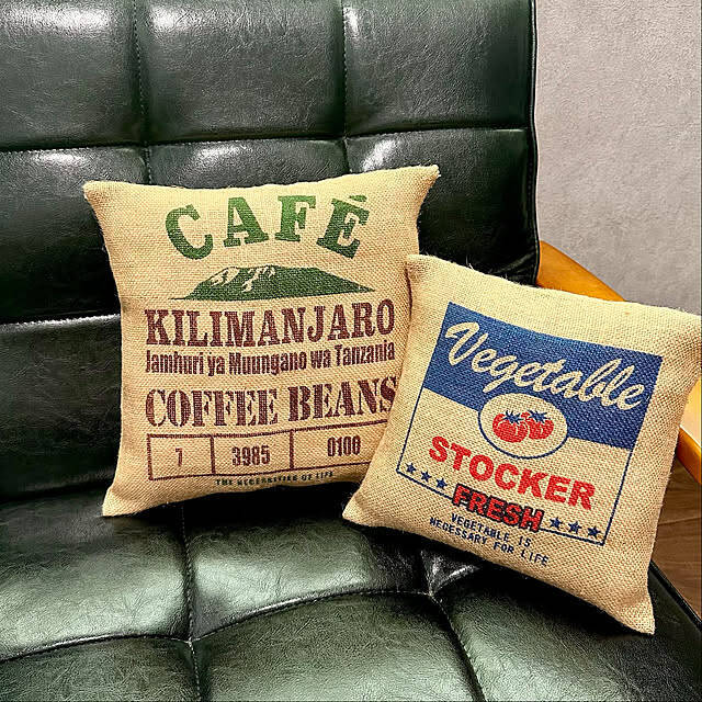 ダイソーのジュートベジタブルストッカーをリメイクして、クッションを作っているmitsukiさんの実例です。接着はグルーガンで行っているとのことで、縫うよりもお手軽なのがうれしいところ。ナチュラルな風合いのクッションは、シックなソファにもよくお似合いですね。