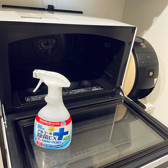 電子レンジの日々のお手入れに取り入れたいのが、アルコール除菌スプレー。MIさんも、「油汚れが取れてスッキリ!」とコメントされていましたよ。シュッとしてサッと拭くだけなので、面倒くさくならずに続けられそうです。