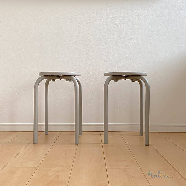 1脚5キロのスツールを手放し、無印良品のスチールスツールを新しくお迎えされた、tintinさん。落ち着いたウォームグレーが、部屋になじみますね。軽くて持ち運びやすいスツールは、来客用にスタッキングしてクローゼットに収納しているそうです。
