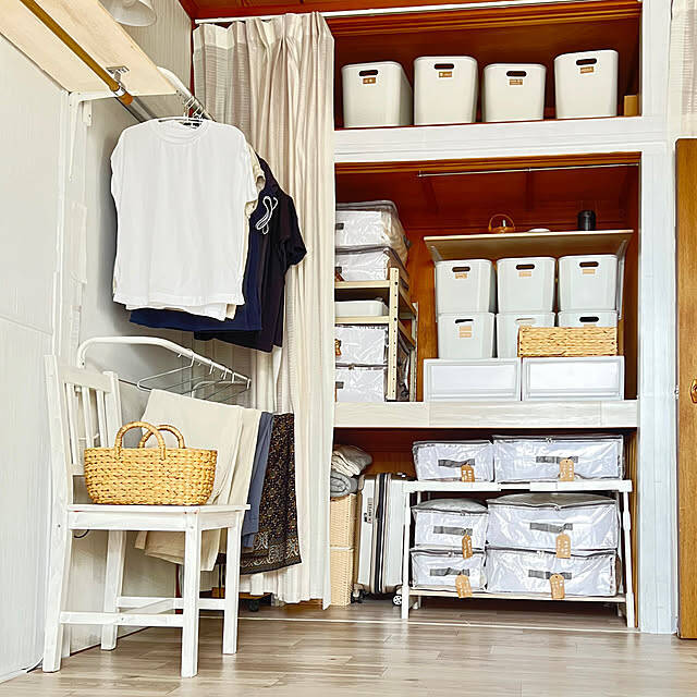 クローゼットに物をそのまま入れていくだけだと、どこになにがあるかわからなくなってしまうもの。収納ケースやボックスなどを活用して、管理しやすいようにしてみましょう。まずは、100均の収納ケースを使っているユーザーさんの実例からご紹介します。