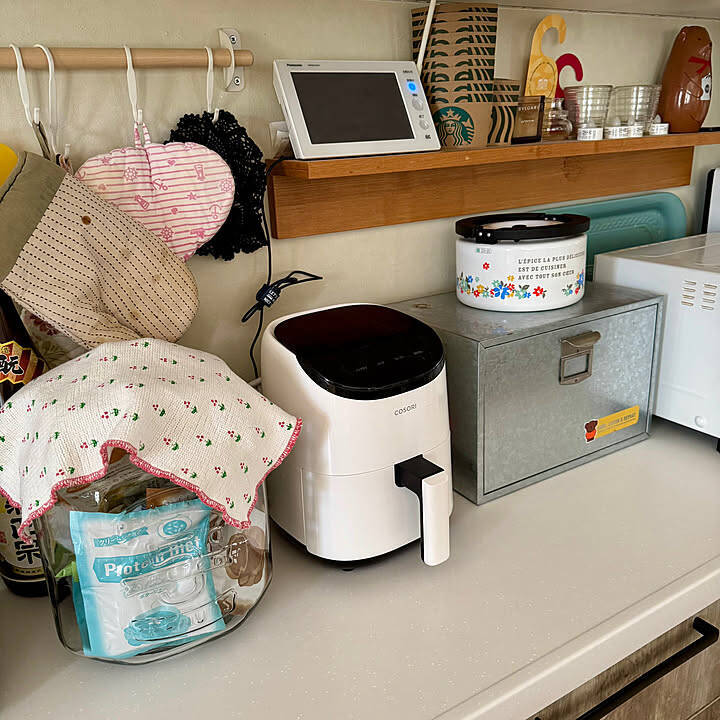 nekozo328さん「キッチンに馴染むコソリ ノンフライヤー(2L)です。キッチン家電を白色で揃えている我が家。二人前位までの揚げ物なら十分の大きさ。」