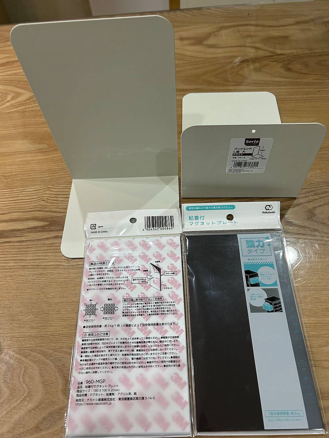 ブックエンド×2【Seria(セリア) 売場:オフィス/文具】粘着付マグネットプレート×2【Seria(セリア) 売場:オフィス/文具】つくりかた