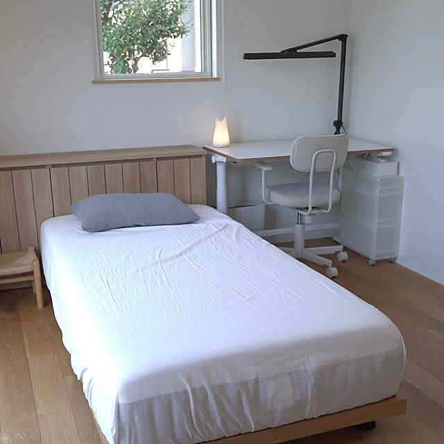 同じアイテムを部屋に設置するときでも、背丈の低いものを選択することで、よりお部屋を広く見せることができます。rinoさんが選ばれていたのは、ローベッド。実際に圧迫感がなくくつろげる空間になっているそうですよ。
