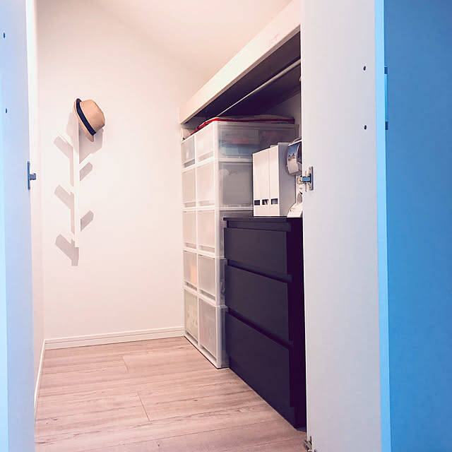 こちらの実例では、IKEAのMACKAPÄRをお部屋の壁際に設置しています。コートハンガーとシューズラックに分かれていて、身支度に必要なアイテムを一気に整理できそうですね。白い色合いがカラフルでポップな空間によく馴染んでいます。
