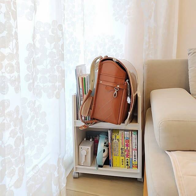 ランドセルを自分の部屋に置いてくれない。早5年……。ソファー周辺に置かれてました。宿題もいまだ机ではなくリビング。動線が自分の部屋ではなくてやっぱりリビングなので、今更ながら色々な使い方ができて動かせる無印良品の『収納ラック』をソファー横に置きました♪あと1年しかないので汎用性高いのが購入の決め手。中学生になって自分の部屋で使う様になってもカバン置きとして置ける大きさ◎高さ3種類を組み合わせ自由で引き出しも追加可能♪大きすぎず、私も寝室にパジャマ置きや一時服置きに欲しいなと思う小回りがきく万能なラック!