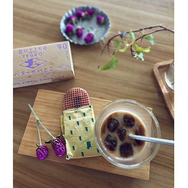 今日のおやつタイム♪娘宅で頂いたバターのいとこ、季節限定のブルーベリー。娘にお裾分けで貰ったのでアイスカフェ・オ・レで食べました♪スリーピーのコースタートレイは、お皿いらずの焼き菓子やチョコとかにいいです◎