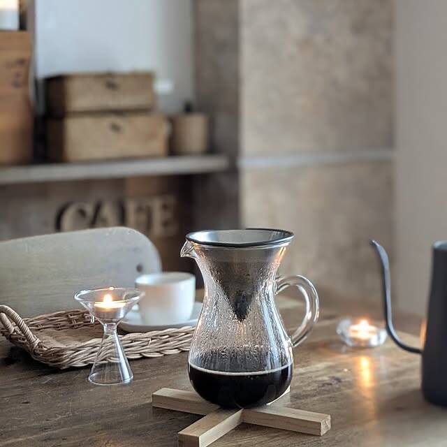 yuriyanaさんがおうち時間を楽しむコーヒータイムに取り入れていらっしゃったのは、KINTOのコーヒーカラフェセットです。シンプルなデザインが、あらゆるスタイルのテーブルコーディネートにマッチします。家にいながらにして、カフェのような上質なひとときを過ごせそうです。
