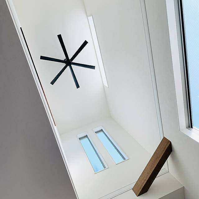 RIRITANさんは、リビングにある吹き抜けにオーデリック シーリングファンパイプ吊型を取り付けていました。DCモーターファンが搭載された6枚羽タイプで、よりきめ細やかでソフトな風を届けてくれます。シンプルで洗練されたデザインは、白を基調にした空間のワンポイントとしてもおしゃれですね。