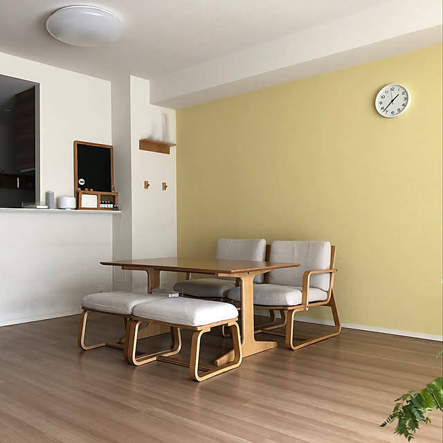 シンプルなお部屋で「リビングでもダイニングでもつかえるシリーズ」を活用されているsachiさんの実例です。実例のようにベンチを2つ並べると、圧迫感もなくスッキリした印象になりますね。さりげないグリーンが良いアクセントになっています。