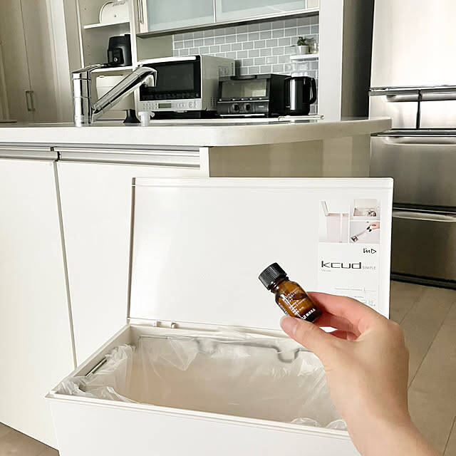 梅雨の時期や夏の時期はゴミ箱の蓋を開けると嫌な匂いがプ~ン。そのため私は対策として、無印のオイルを新しいゴミ袋に交換した時に1~2滴垂らして使っています。この無印のオイルは消臭エッセンシャルオイル♪このオイルを垂らしておくとあの嫌な匂いが軽減されて良い感じです♪強烈に感じる時はその時に追加で1滴垂らすこともあります。オイルの説明書を読むと、アンモニアやトリメチルアミンの2つの悪臭を軽減する効果のあるエッセンシャルオイルだそうです。この時期に、少しでも快適なゴミ箱の蓋の開け閉めができる、私なりのちょっとした工夫でした。