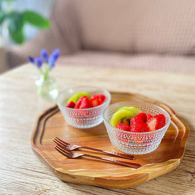 mintteaさんは、イッタラのカステヘルミボウルを愛用しています。朝露をモチーフにした細やかな模様が、上品なイメージですね。イチゴやキウイなど色鮮やかなフルーツを盛り付けると、爽やかな雰囲気満点に。直径11cm、高さ5.2cmの手ごろなサイズ感で、サラダなどにもぴったりです。