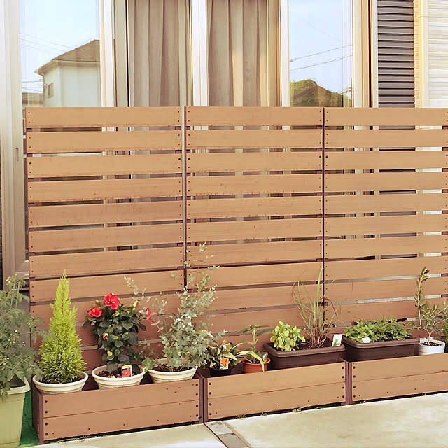 ユーザーさんは、お子さんがカーテンをめくって外から室内が見えてしまう状況を、プランター付きの目隠しフェンスで対策されています。季節の花や樹木を育てながら気になる視線をやわらげられることができるのは、うれしいポイントですね。家族みんなが安心して過ごせる場所を大切にされていることが伝わってきます。