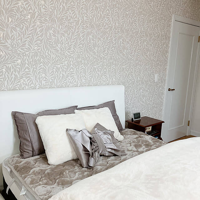 置くだけ簡単敷きパッド(NウォームWSP グレー)で冬の寝室をあたたかく整えられているTupemamaさんです。ふっくらとした質感に包まれたベッドまわりは、上品な色合わせでまるでホテルの一室のようです。ゴムバンドがないので、つけ外しがラクなのもうれしいポイントですね。