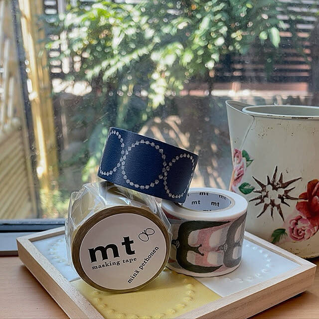 ミナペルホネンのマスキングテープを購入されたkuikoさんの実例です。小物のアレンジに使ったり手帳やノートをデコレーションしたりできるテープですが、実例のように飾っておくだけでも良いですね。インテリア雑貨感覚で使えるのも魅力の逸品です。