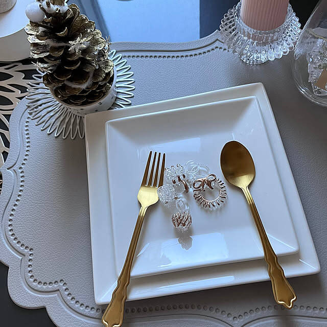 ユーザーさんはニトリのフリンジプレートを並べて、華やかなテーブルコーディネートをされています。縁のゆるやかなフリンジがやさしいアクセントになり、食卓が上品な雰囲気にまとまっていますね。どんなシーンでも使いやすく、さまざまな盛り付けを楽しむことができそうです。