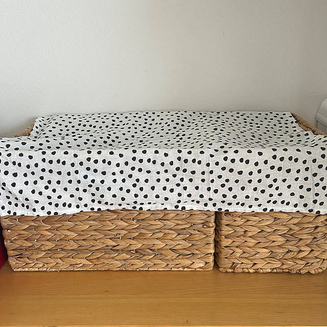 naoさんは、IKEAで買ったキッチンクロスをかごの上に掛けています。かごに掛けるだけと、とても簡単な方法ですが、かごの中身が見えなくなってすっきりしますね。かごとキッチンクロスの組合せ方も楽しめます。簡単な方法なので、さっそく取り入れたいですね。