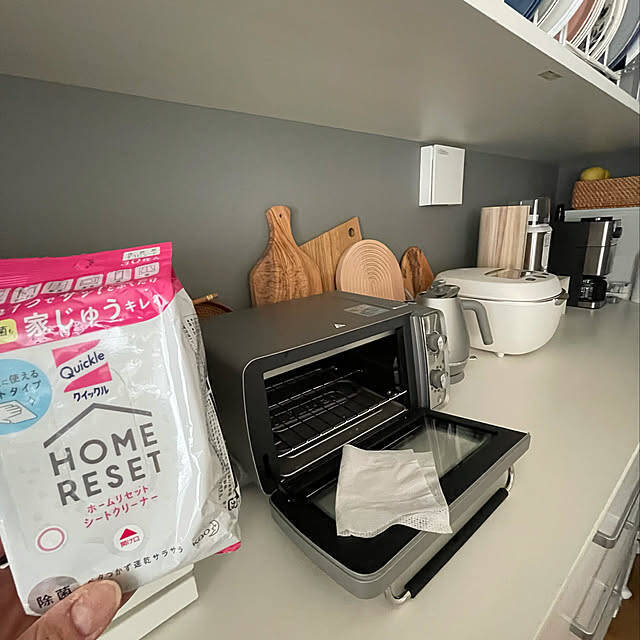 mitsu20170805さんは、トースターが汚れたときにクイックルの「ホームリセット シートクリーナー」でサッと拭き掃除をしていました。パンくずから油汚れまで、さまざまな汚れにこれ一枚で対応できます。2度拭きがいらないので、毎日のちょこっと掃除にもぴったりのアイテムです。