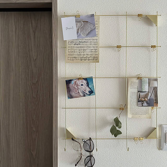 _mimiamimiさんが使用されているのは、IKEAのクリップ付きメモボード「ミールヘーデン」です。ポストカードや写真など、好きなモノをクリップで挟んでディスプレイされています。ゴールドカラーがアクセントになり、壁面を上品に演出してくれますね。