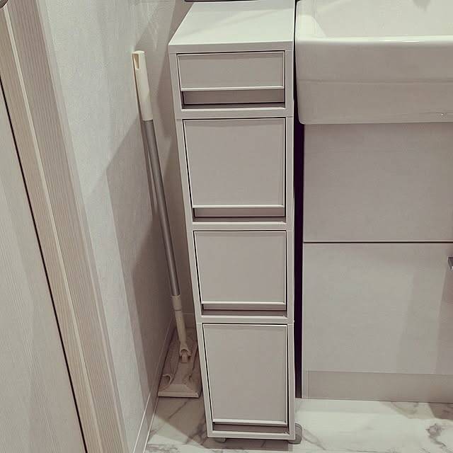 洗面所で無印良品のキャスター付きストッカーをお使いのユーザーさんです。奥行きがあるので見た目以上に収納力があり「凄く重宝してます♪買って良かったです」と気に入っておられました。キャスター付きなのでお掃除が楽なところも、お気に入りのご様子でしたよ。
