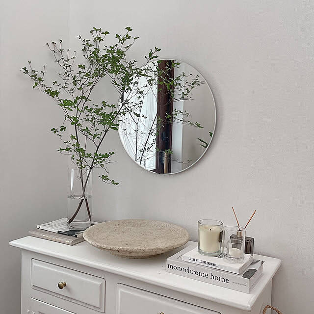 玄関を、ホワイト中心の優しい雰囲気で整えているユーザーさんです。キャビネットの上には、ZARA HOMEのセラミックトレイが置いてありました。ユーザーさんは、このトレイを鍵置き場として使っておられるそうです。アイボリーの色味が、玄関をより温かく感じさせますね。