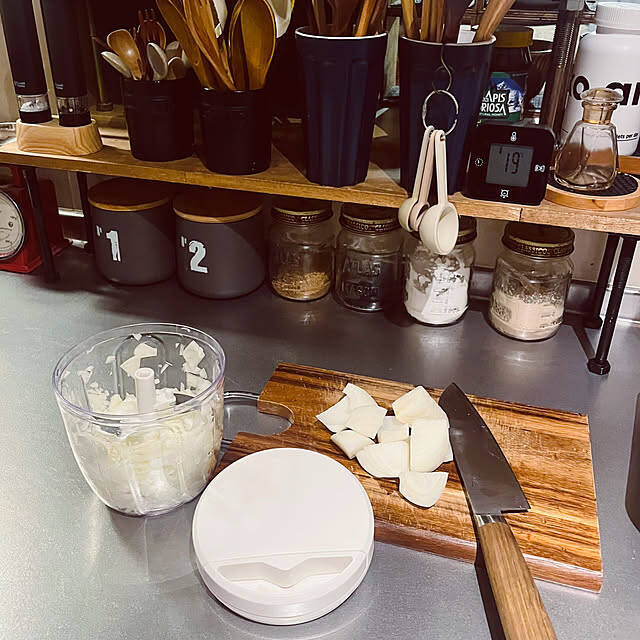 先日購入した、無印のみじん切りチョッパー‼︎やっと使用してみました。1回で入れられる容量は、玉ねぎ大サイズの半分くらい。4~5回レバーを引っ張って、問題なく無事にみじん切り完了♪とーっても楽ちんです。フードプロセッサーを出す面倒から解放されました。