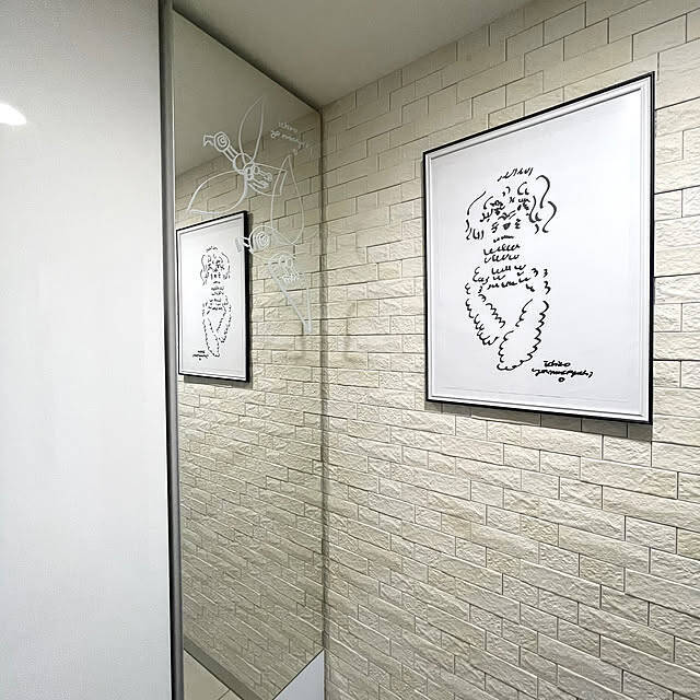 玄関にミラーや絵を飾られているmanchanさん。絵には大切なワンちゃんが描かれていたり、ミラーには鳥の絵が表現されたりしていますよ♪シンプルな中に個性が光る、特別な空間となっていますね。