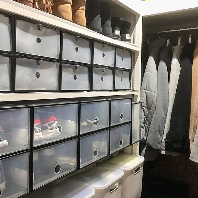 まずご紹介したいのは、収納アイテムを使って靴を収納しているユーザーさんたちです。ほこりなどの汚れが気になる場合、シューズケースなどを使うことで靴をきれいな状態に保つことができますよ。みなさんどのようなアイテムを使っているのか、実例を見ていきましょう。