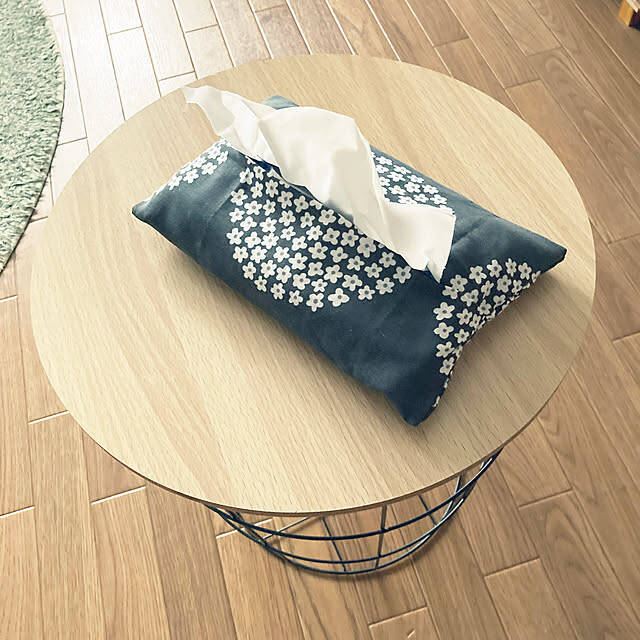 ピンとくるティッシュカバーがなかなか見つからなかったというmilkさん。そこで、セリアの手ぬぐいを使って手作りしました。ダークカラー×白い小花柄が、ナチュラルなインテリアにぴったり。ティッシュの生活感をカバーしてくれるうえに、軽くて交換しやすいなどいいことづくめだそうですよ。