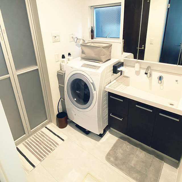 Haruさんが新調されたバスマットは、「手軽に洗いやすいタオル地バスマット」です。衛生面が気になるバスマットも、洗いやすいタオル地だと清潔に保てますね。ブラウンとブラックのストライプ柄は、スッキリしたモノトーンインテリアの洗面所のアクセントとしてもぴったりです!