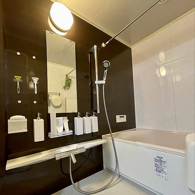 yasuyo66さんが使用されているのは、大きなマグネットでしっかりと壁にくっつく、towerの「マグネットツーウェイディスペンサー」です。こちらならシャンプー・コンディショナー、ボディーソープのボトルを置くための棚も不要。底が浮いているので、気になるヌメリやカビが付きにくいのもうれしいところです。