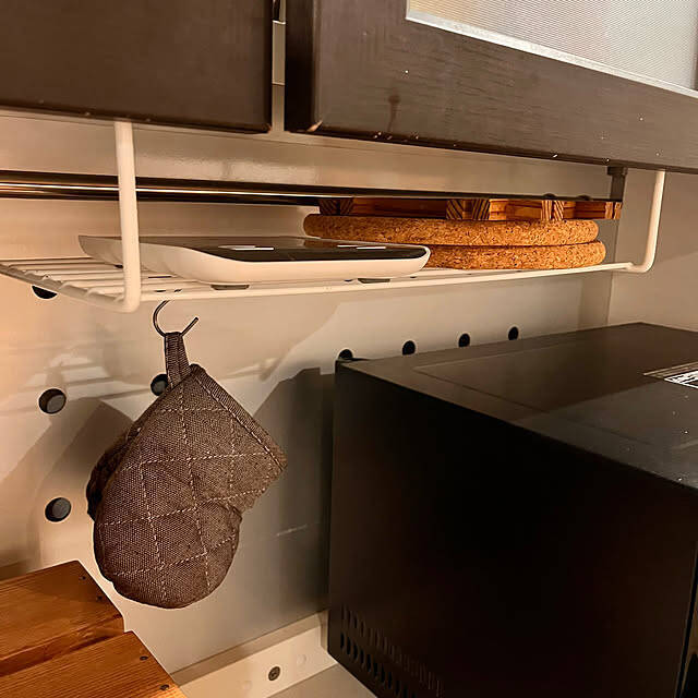 3COINSのワイヤーラックにキッチンスケールと鍋敷を収納♪