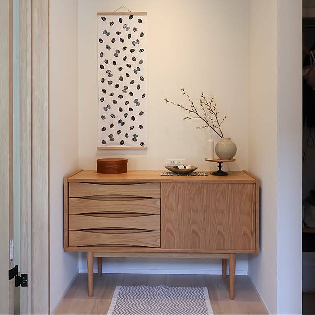 玄関入ってすぐのチェスト。季節に合わせてお気に入りの雑貨を飾るスペースにしています! 帰宅するとほっとするお気に入りの眺めです♪