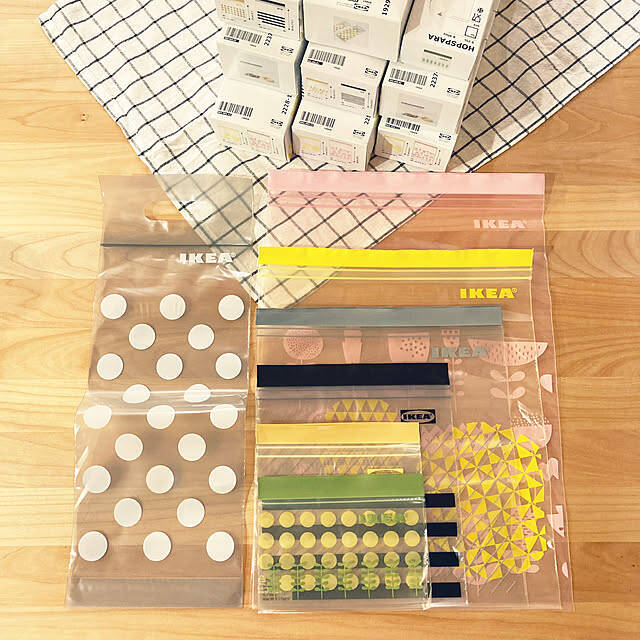 IKEAのフリーザーバッグがなくなったので、スタンダードプロダクツのものを買ってみました♪300円で40、50枚入りです。柄が大人っぽくてかわいい♡小さいのは早速子どものおやつを入れました。