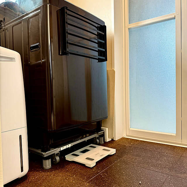 tamabaka1971さんは、洗濯機の下に洗濯機台を設置して収納スペースを作っています。空いたスペースに体組成計を収納でき、脱衣所を広く使えるのがポイント。キャスター付きなので洗濯機も動かしやすく、お掃除もラクにできるのがうれしいですね。
