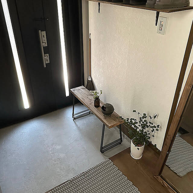 こちらは、zurinさん宅の玄関です。洗練された雰囲気のモルタル土間が目を引きます。なんとホームセンターでモルタルとコテを買って、DIYされたそうです!壁際にベンチや観葉植物を置けば、インテリアがランクアップしますね。