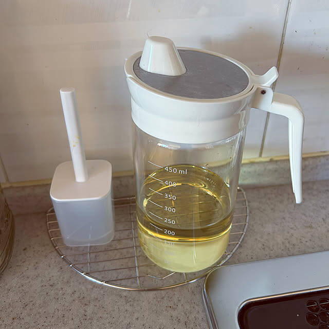 オイルボトルを使うと、注ぎ口から油がこぼれて周りがベタベタに……なんてこともしばしば。suemonta14さんが愛用しているオイルボトルは、液だれしても中に油が戻る構造になっていて、周りを汚すことなく使うことができます。油でべたつくストレスから解放されるとなると、サイズ違いで欲しくなるのも納得です。