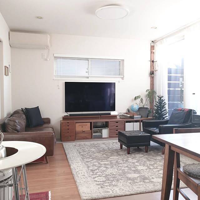 kazさんのリビングでは、無印良品のスタッキングシェルフを飾り棚としてコーディネートしていました。背板のない棚は圧迫感が少なく、積み重ねて使っても壁面にすっきりと溶け込んでくれます。ボックスを組み合わせれば、隠す収納も取り入れられますね。