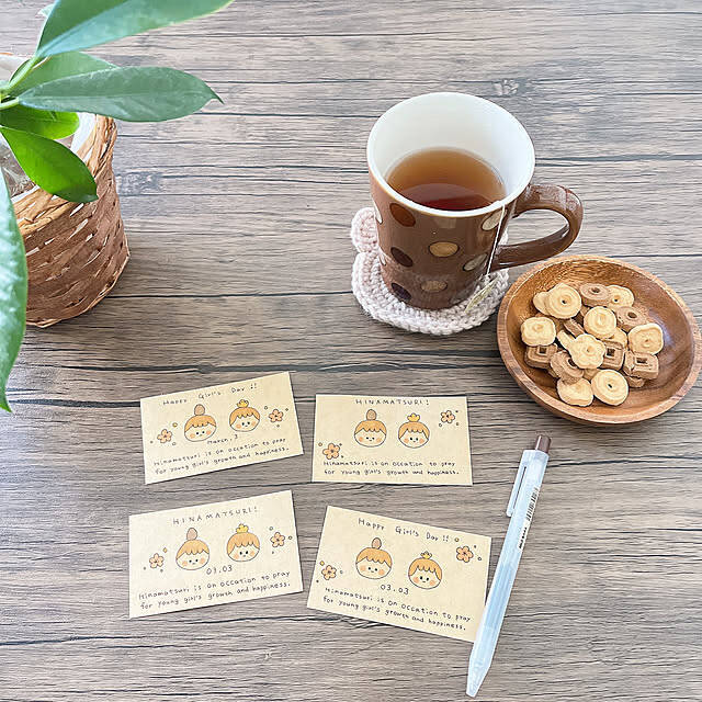 -Riley-mama.-さんが手作りされたカードには、かわいらしいイラストが繊細なタッチで描かれています。使用されているのは「さらさら描けるゲルインキボールペン ノック式」。書き心地良く、細部まで綺麗に描けるのが特徴です。インクの残量が一目でわかる透明な本体も便利ですね。
