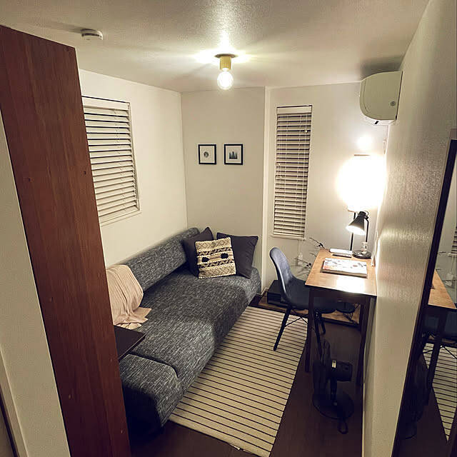 こちらの実例では、細長いお部屋を趣味部屋兼客間として使っています。ベッドソファは広々としていて、座ったり横になったりのんびりとくつろげそうですね。壁に向かってデスクも設置されているので、座って作業に集中したいときも過ごしやすそうです。