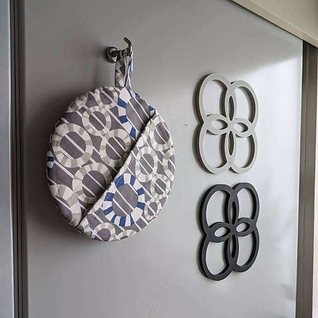 ■シックなデザインの丸い鍋つかみ